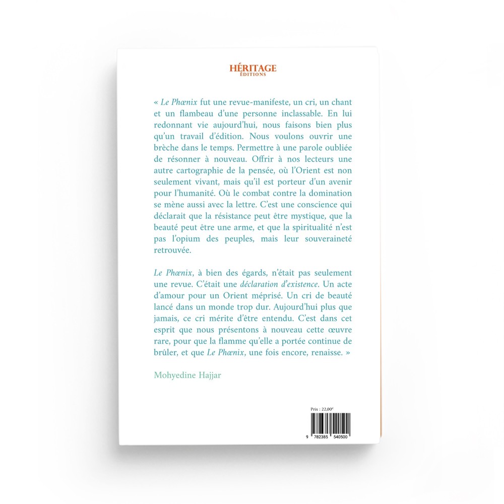 « Le Phœnix fut une revue-manifeste, un cri, un chant et un flambeau d’une personne inclassable. En lui redonnant vie aujourd’hui, nous faisons bien plus qu’un travail d’édition. Nous voulons ouvrir une brèche dans le temps. Permettre à une parole oubliée de résonner à nouveau. Offrir à nos lecteurs une autre cartographie de la pensée, où l’Orient est non seulement vivant, mais qu’il est porteur d’un avenir pour l’humanité. Où le combat contre la domination se mène aussi avec la lettre. C’est une conscience qui déclarait que la résistance peut être mystique, que la beauté peut être une arme, et que la spiritualité n’est pas l’opium des peuples, mais leur souveraineté retrouvée.